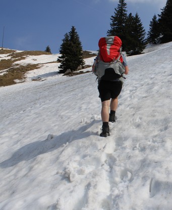 Ajoutez y de la neige avec le contastre verdoyant des prairies remplies de fleurs et vous avez les ingrédients d'un superbe samedi "nature". Au rendez-vous, de la neige, du soleil, la rencontre d'un chevreuil et des moments insolites comme la descente en luge avec...une couverture de survie !