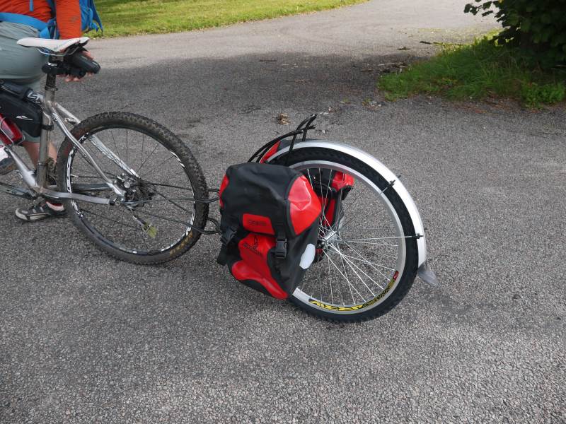 Suite au test de plusieurs remorques monoroue pour le hors série "Voyager à vélo" de Carnets d'aventures, j'ai pu garder quelques remorques.