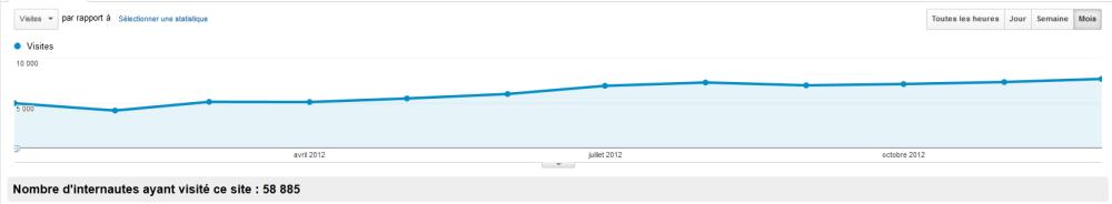 J'espère que cette année a également été faste et riche en sortie nature pour vous et vos proches. Que 2013 soit aussi bonne sinon mieux ! Notons que partir-en-vtt.com entre dans sa quatrième année d'existence ! Nous lui souhaitons pleins de bonnes choses pour qu'il puisse continuer sur cette lancée. Nous espérons vous voir de plus en plus nombreux à visiter et à participer sur le forum ou sur les commentaires. Bonne fête de fin d'année ! Pour vous montrer l 'évolution des visites sur l'année 2012, je vous invite à venir regarder le graphique ci-dessous.